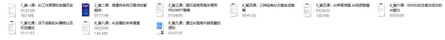乌鸦救赎《AI赚钱联盟》 男生课程 课程目录: 1_第一课:AI工作原理和发展历史.mp4 2_第二课:搭建符合自己需求的智能体.mp4 3_第三课:提示词使用高手惯用PROMPT策略.mp4 4_第四课:三种经典AI文案生成策略.mp4 5_第五课:AI声音克隆 AI视频剪辑.mp4 6_第六课:你对AI的态度决定你的AI能力.mp4 7_第七课:当下成熟的AI赚钱以及引流模式.mp4 8_第八课:AI发展的未来展望.mp4 9_第九课:通过AI提高内容质量的原则.mp4 资源下载下载价格9.9 救援币VIP免费立即购买遇到任何问题点击联系右下角在线客服,看到会第一时间解决问题。 0